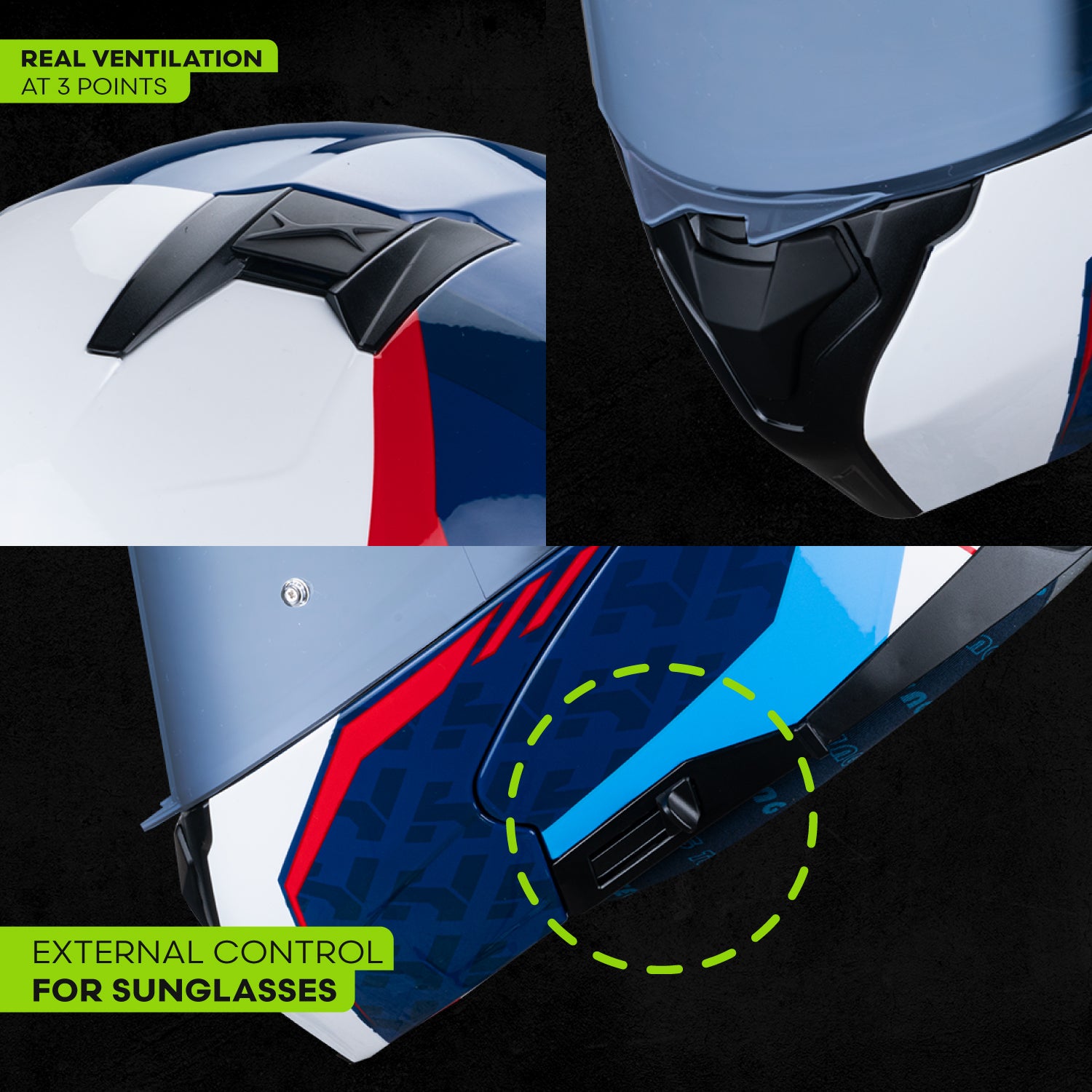 - Ventilation: 1 lower, 2 upper intakes, rear exhaust + optional spoiler
