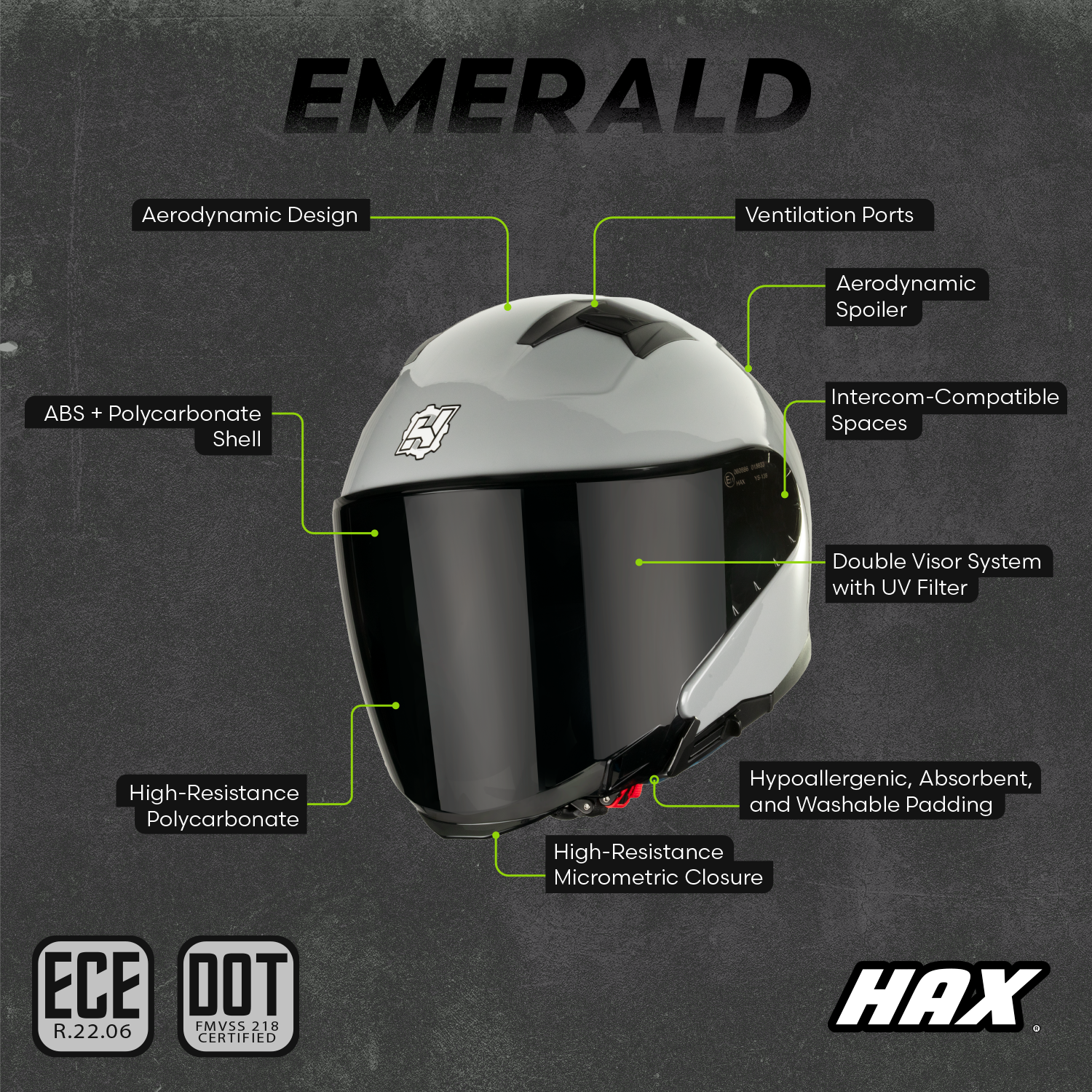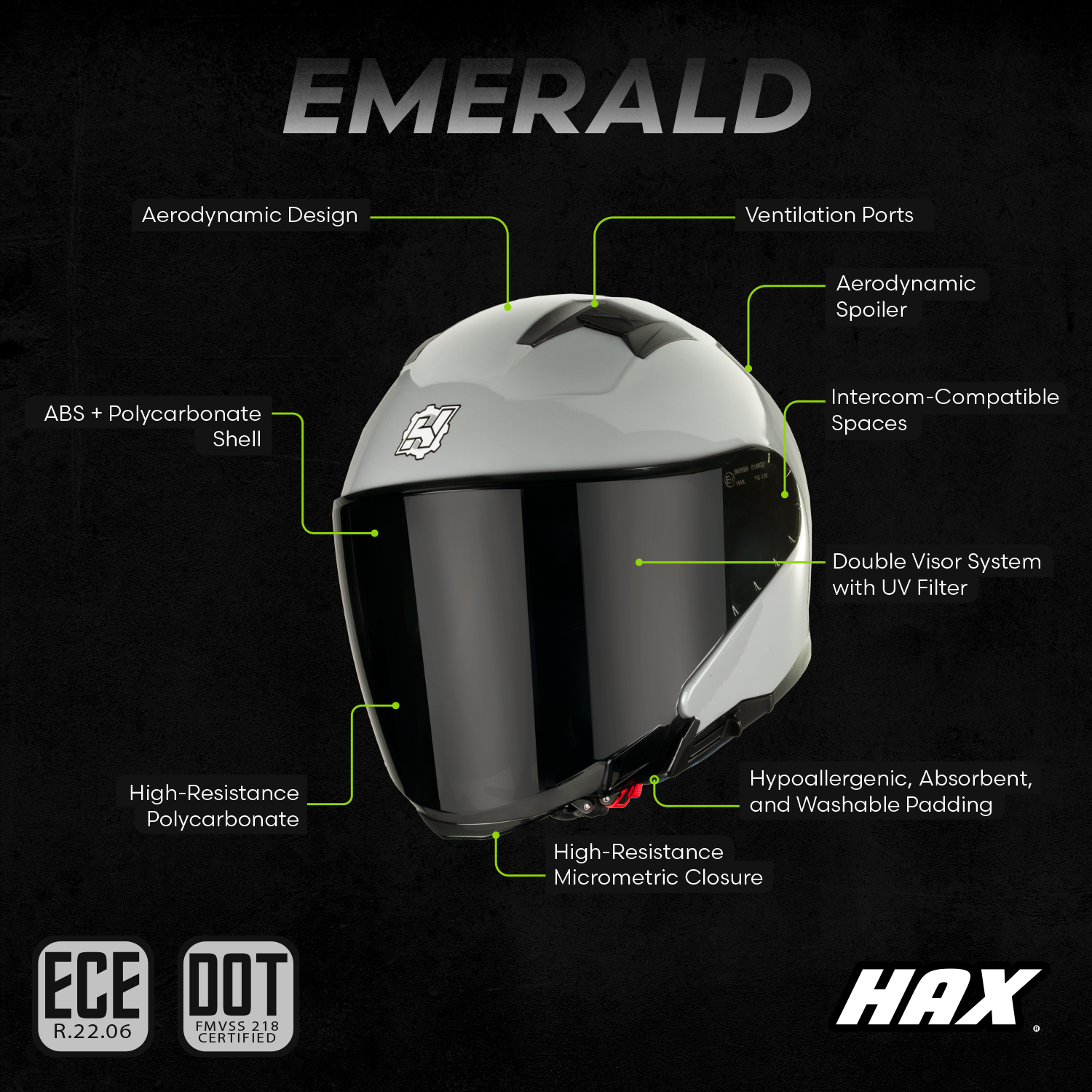 - Certification: ECE 22.06 + DOT FMVSS 218 Certified