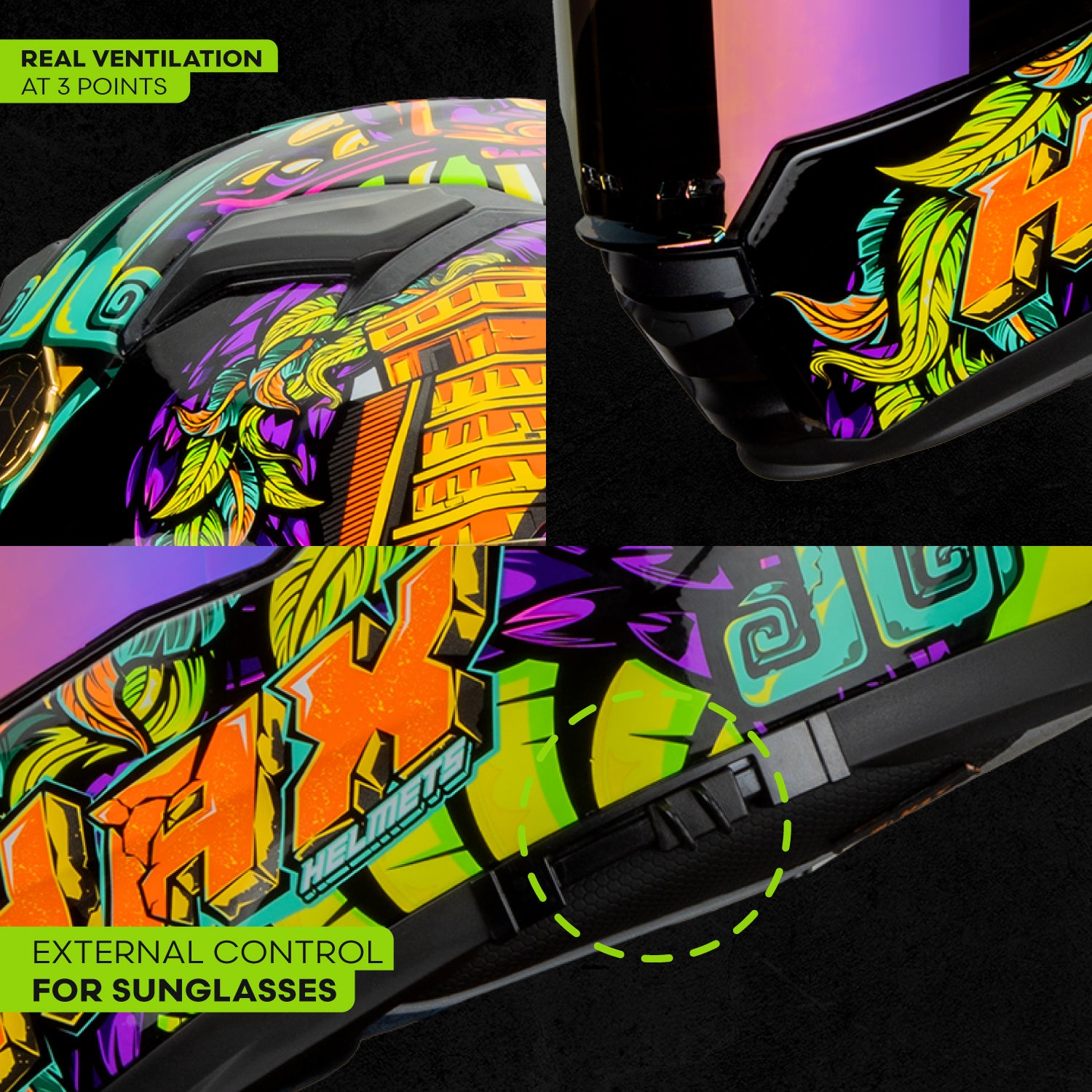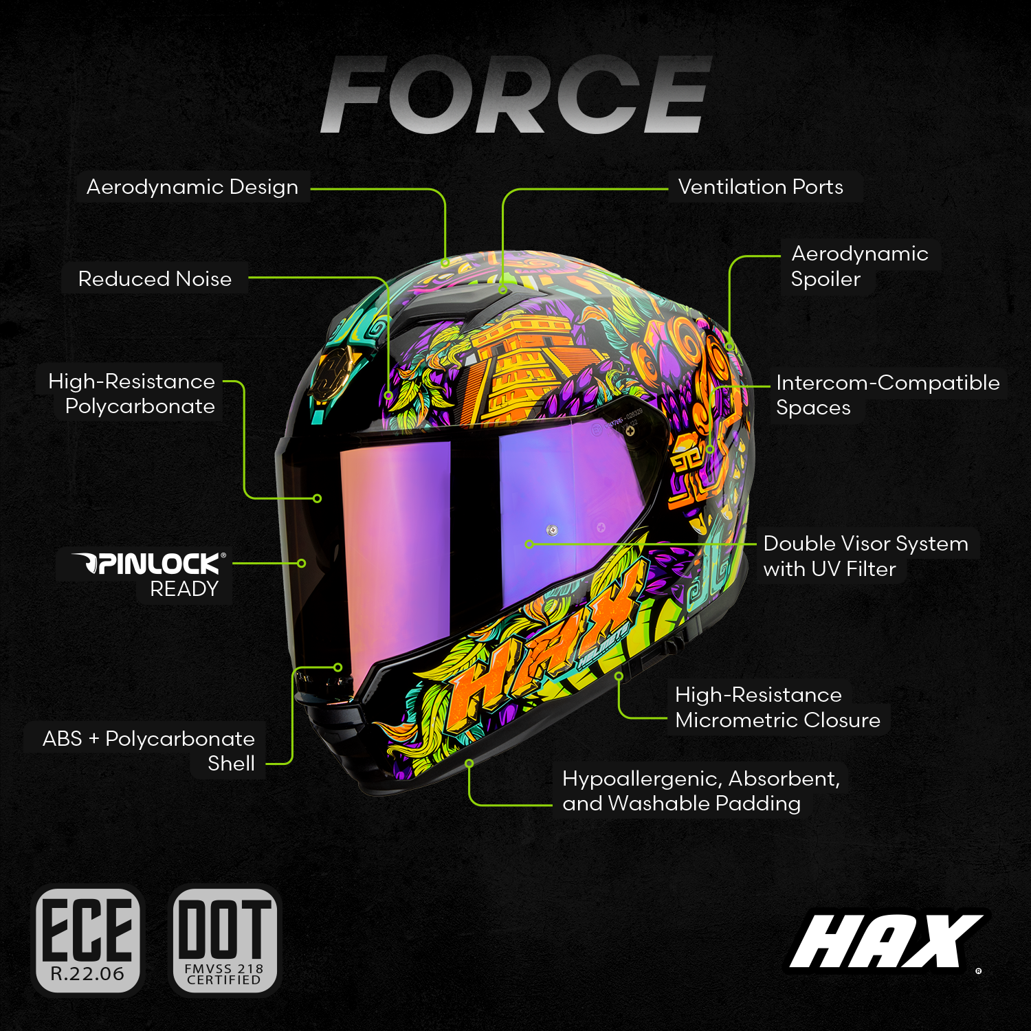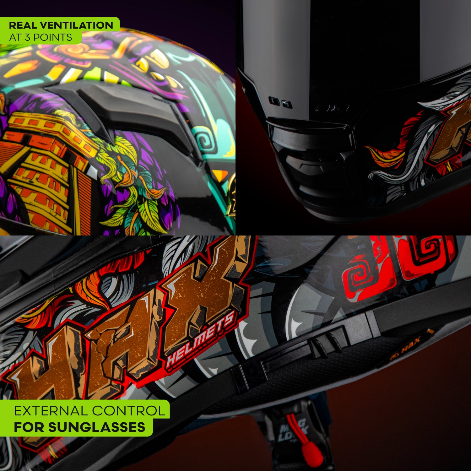 Inspired by ancient warriors, this helmet combines cultural identity with modern safety. Part of the exclusive Pre-Hispanic Collection.