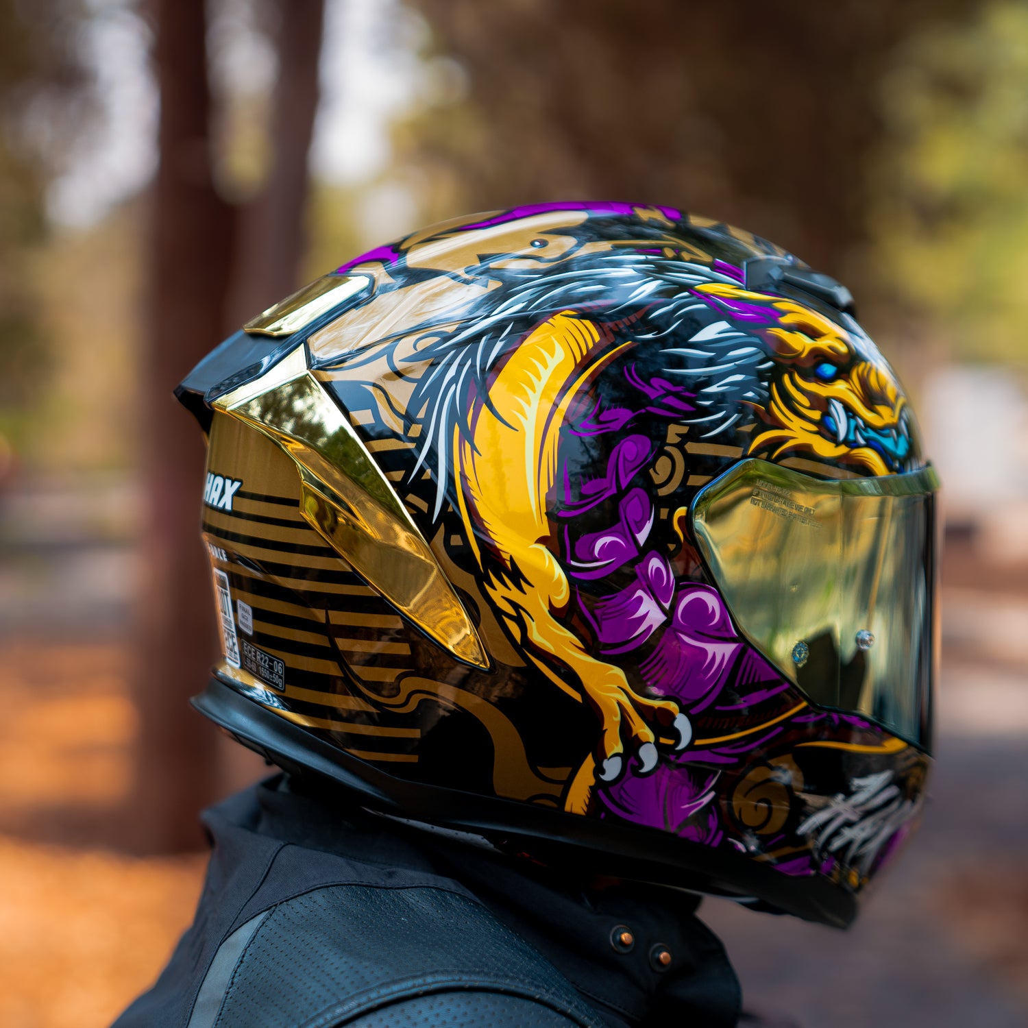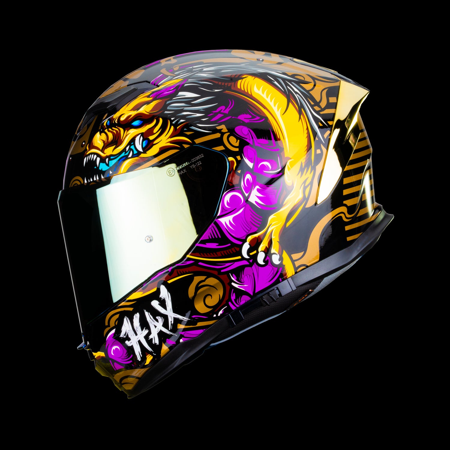 Inspired by Shenlong, the celestial dragon from Eastern mythology, this striking purple and gold helmet combines mythical design with top-tier safety and comfort.
